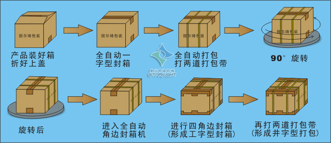 帶子送到位→收到捆扎信號→制動(dòng)器放開,主電機(jī)啟動(dòng)(1)→右頂?shù)渡仙?,頂住右?guī)в诨逄帲?)→“T”型導(dǎo)板后退(3)→接近開關(guān)感應(yīng)到退帶探頭(4)→主電機(jī)停轉(zhuǎn),制動(dòng)器吸合(5)→打包機(jī)退帶電機(jī)轉(zhuǎn)動(dòng),退帶0.35秒(6)→帶子收緊捆在物體上(7)→主電機(jī)二次啟動(dòng),制動(dòng)器吸合(8)→大擺桿二次拉帶,收緊帶子(9)→左頂體上升,壓緊下層帶子(10)→加熱片伸進(jìn)兩帶子中間(11)→中頂?shù)渡仙?,切斷帶子?2)→中頂?shù)断陆担?3)→中頂?shù)对俅紊仙?,使兩帶子牢固粘合?4)→中頂?shù)断陆?,左右頂?shù)锻瑫r(shí)下降(15)→加熱片復(fù)位(16)→滑板后退(17)→“T”型導(dǎo)板復(fù)位(18)→接近開關(guān)感應(yīng)到送帶探頭(19)→送帶電機(jī)啟動(dòng),帶動(dòng)帶子送帶(20)→大擺桿復(fù)位(21)→帶子到位,帶頭頂?shù)健癟”型導(dǎo)板上(22)→接近開關(guān)感應(yīng)到雙探頭(23)→主電機(jī)停轉(zhuǎn),剎車吸合(24)→打包機(jī)完成一個(gè)工作循環(huán)。星火平頂山打包機(jī)有限公司的打包機(jī)設(shè)計(jì)合理是食品行業(yè)眾所周知的,它的工作流程簡單快捷符合企業(yè)的生產(chǎn)使用要求,因此平頂山打包機(jī)的成功絕對不是偶然的而是經(jīng)過科研人員的不懈努力換來的。